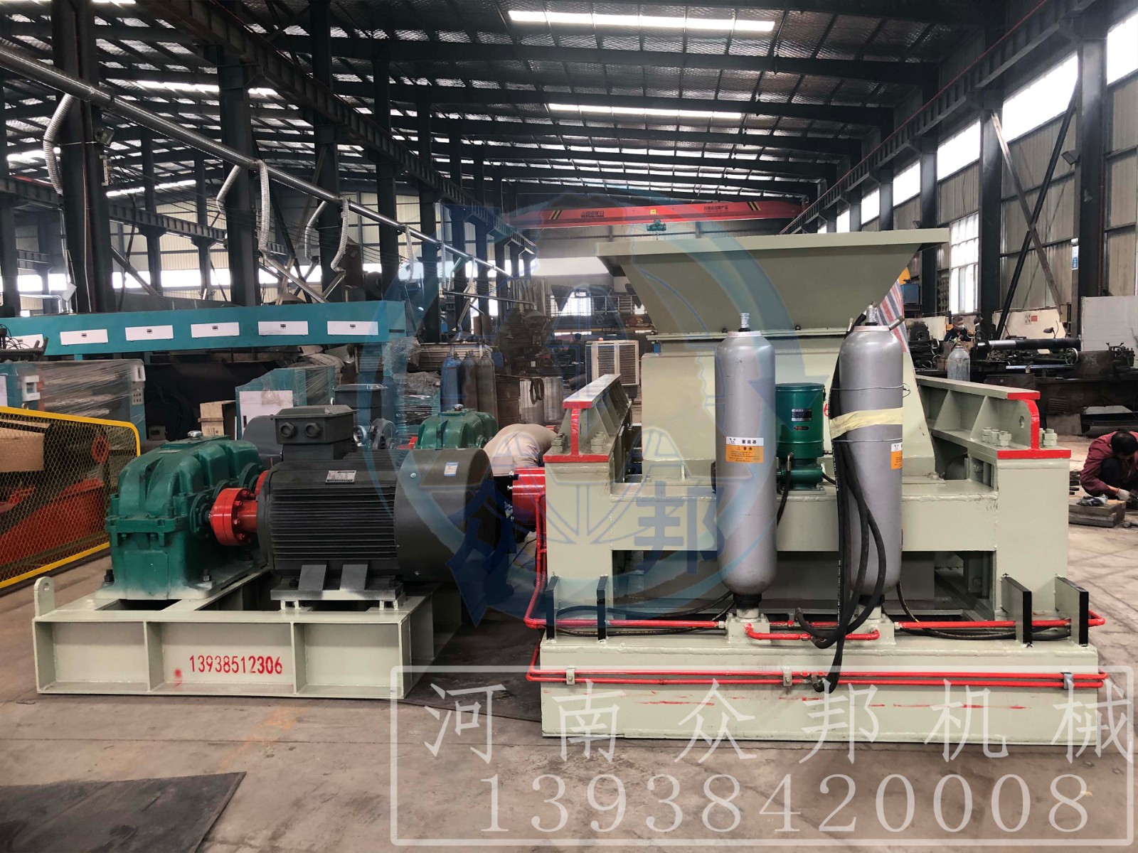 3、驅(qū)動機構(gòu)是由兩個電動機,通過三角皮帶傳動到槽輪上拖動輥輪,按照相對方向運動旋轉(zhuǎn)。在破碎物料時,物料從進料口通過輥輪,經(jīng)碾壓而破碎,破碎后的成品從底架下面排出。